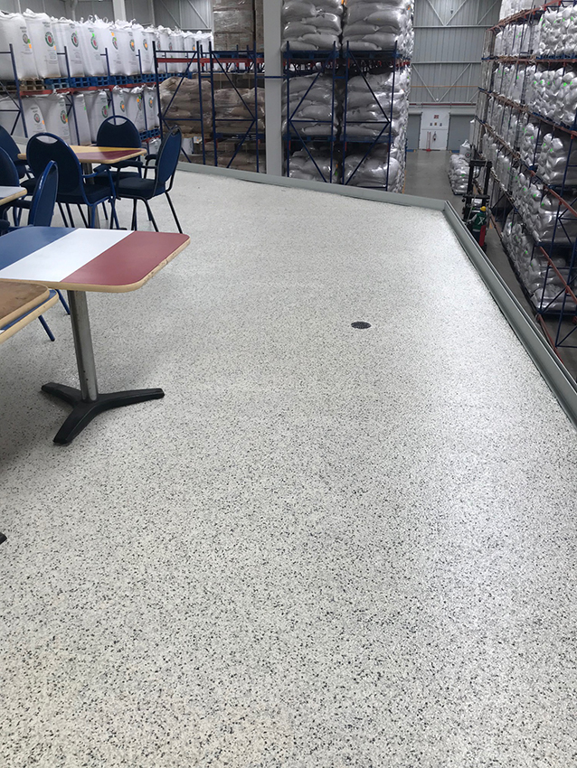 Piso epóxico con acabado cuarzo color para áreas de alto tránsito